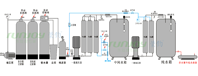 對出水水質要求較高,電導率≤5以下的純水也適用于源水水質較差的地方,多用于北方地區。